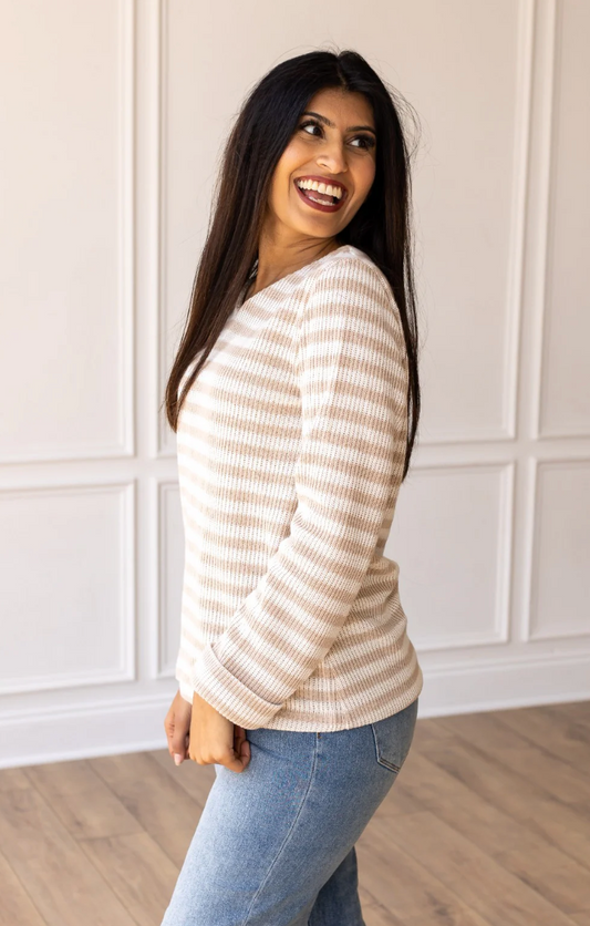 Pretty Idea Tan Stripe Sweater